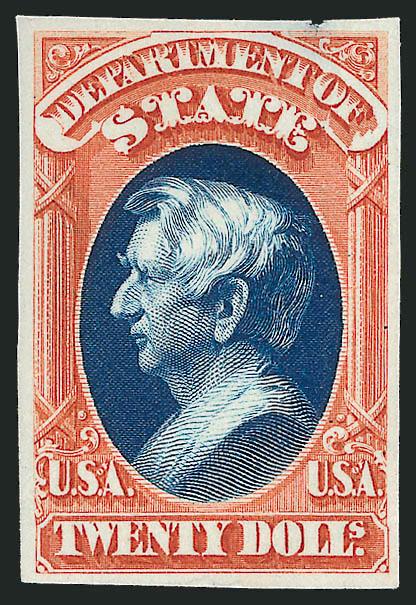 365 TC Image$2.00 Scarlet & Blue, State, Atlanta Trial Color Proof (O71TC). Large margins, bright colors, small pinhole, thin spot at top, otherwise Very Fine (Image)