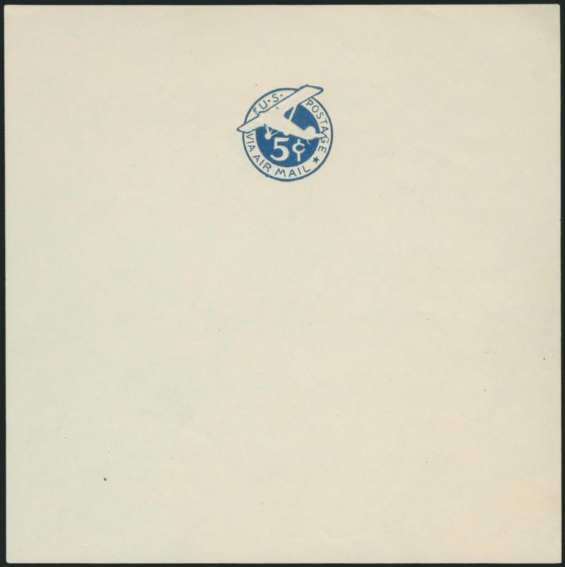 367 P Image5c Dark Blue, Die 1, 1929 Air Post Entire Die Proof (Undersander EAM1B-b). Centered at top of 164 x 164mm sheet of paper, rich color which is darker than the issued entire or the other listed proofs, Watermark 28, fresh and Very Fine, rare with fewer than a dozen examples known, unlisted in Scott, Undersander Value (Image)