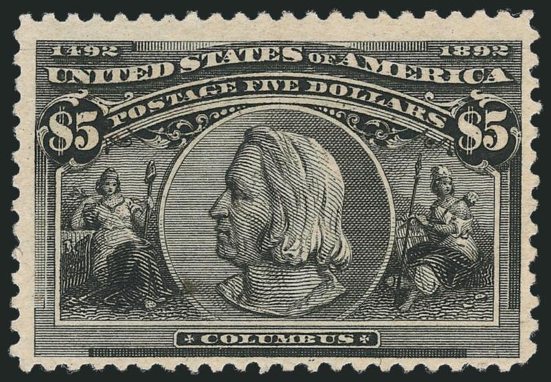 1002 ng Image1c-$5.00 Columbian (230-239, 241, 245). Unused set, complete less the 50c and $2.00-$4.00 values, several of the lower values up to the 10c Mint N.H., $1.00 regummed, $5.00 no gum, bright colors and a number well-centered, a few small flaws incl. on the $5.00, overall Very Fine or appear so, 8c with 1996 P.F. certificate (Mint N.H) (Image)