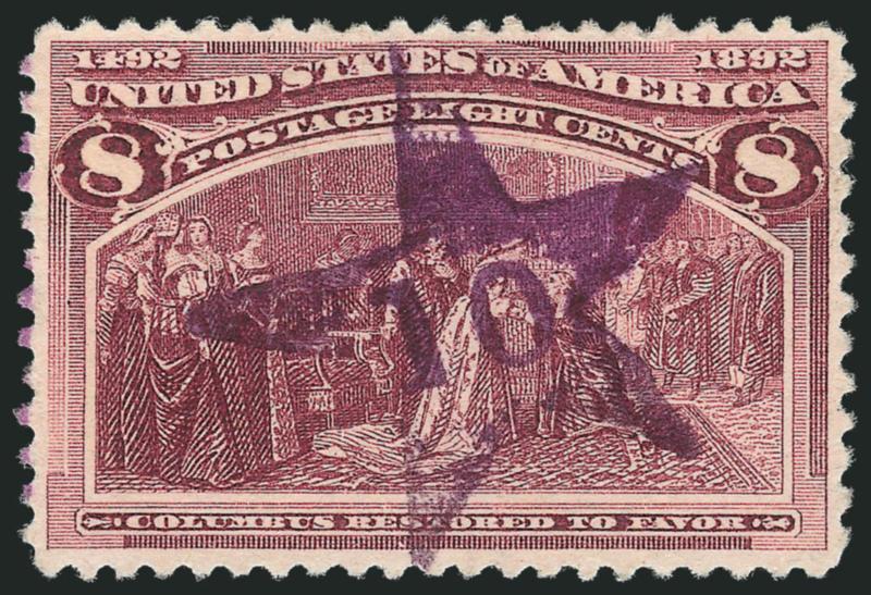 1007 FC ImageFancy Cancels on Columbians. 20, incl. seven 2c, three 4c, one 6c, five 8c, two 10c and one 15c, incl. heart, scarabs on 2c, 4c and 8c, 10c with stars, 15c unusual grid, stamps with minor flaws as expected, Very Fine strikes, unusual with fancy cancels, lot also incl. No. 231 tied by "Cincinnati Jan. 3, 1893" duplex on cover to Lebanon Ky., receiving backstamp, Very Fine, the the earliest reported use from Cincinnati (Image)