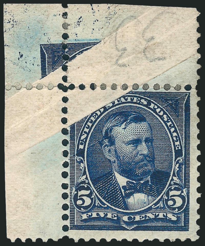 998   Image1894-98 Bureau Issues, Paper Folds and Forgeries. Four pre-printing paper fold items, incl. Mint N.H. bottom right corner selvage block of six of No. 250 with dramatic paperfold causing wide area of unprinted paper and wild perfs, block of 27 of No. 279B with twelve stamps affected by pre-printing paperfolds of varying intensity, single of No. 279B with paperfold at lower left which causes a 5mm gap in the design as well as freak perfs, and left corner selvage single of No. 281, creasing at top left causing dramatic shift with top left portion of design printed in selvage, a few flaws throughout but a wonderful group of these varieties which would make a nice exhibit page, lot also incl. four 2c Carmine, Ty. III, Lithographed Counterfeits, on watermarked paper and gummed, few flaws mostly in perforations, in April 1896 two young men offered to sell the 2c issue at a 5% discount, they are on a different paper than the counterfeits that surfaced in 1894 (Image)