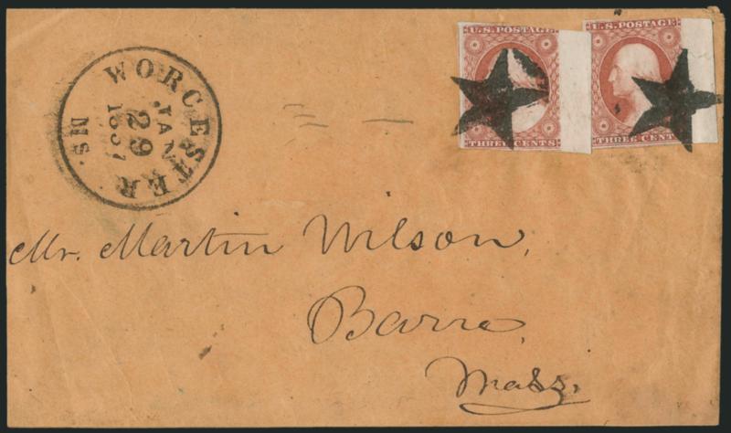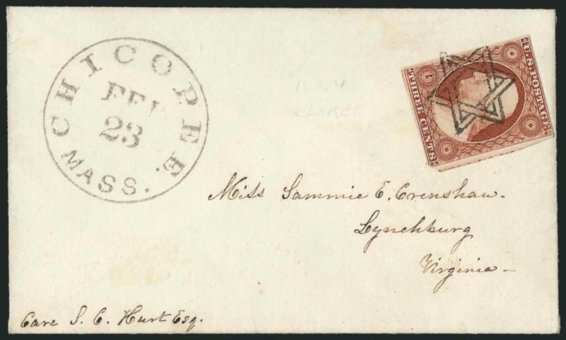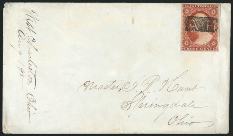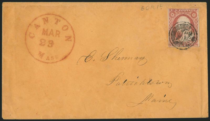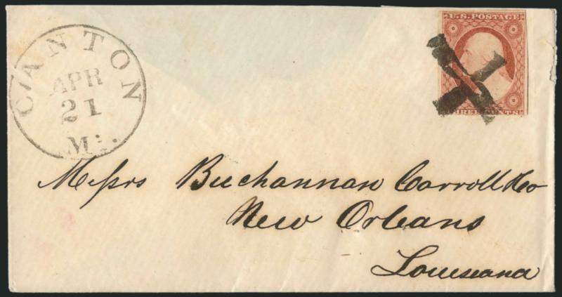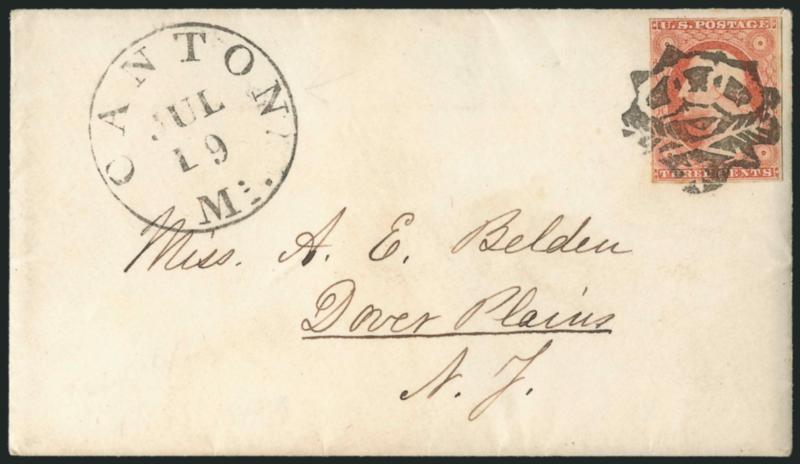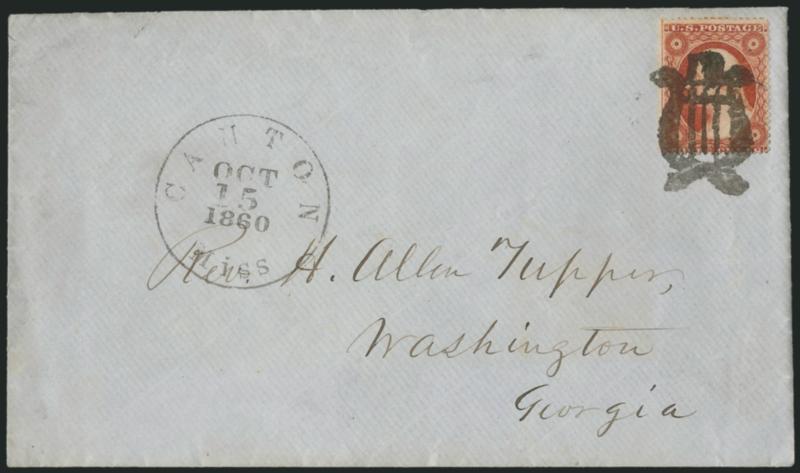 EXTREMELY FINE. A SUPERB STRIKE OF THE CANTON MASONIC FANCY CANCEL. THIS IS THE ONE OF THE FINEST STRIKES WE HAVE ENCOUNTERED.
