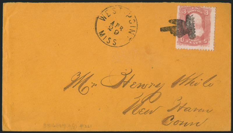 EXTREMELY FINE. A MAGNIFICENT FANCY CANCELLATION SYMBOLIZING THE "HAND POINTING WEST" OF WEST POINT, MISSISSIPPI.