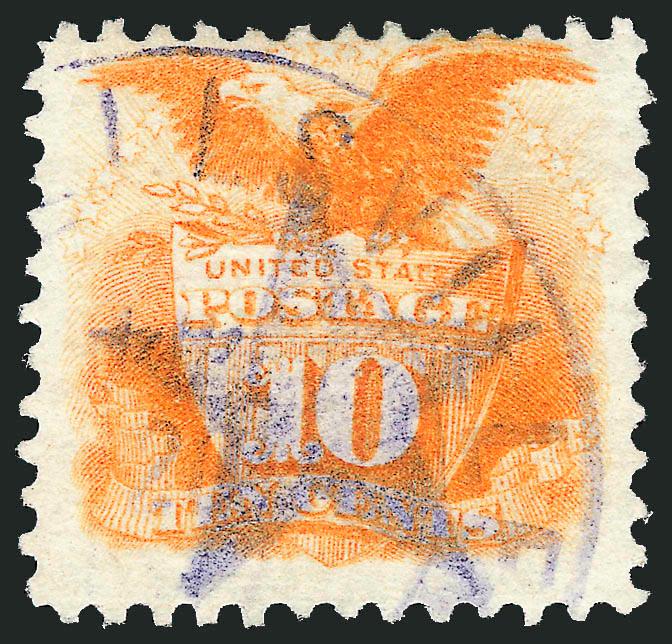 199 FC Image10c Yellow (116). Rich color, cancelled by bold strike of "Paid" in Shield with Stars fancy cancel of Dedham Mass., diagonal creases at top right and bottom left, centered to bottom right, Very Fine strike of this desirable cancel, with 1996 P.F. certificate (Image)