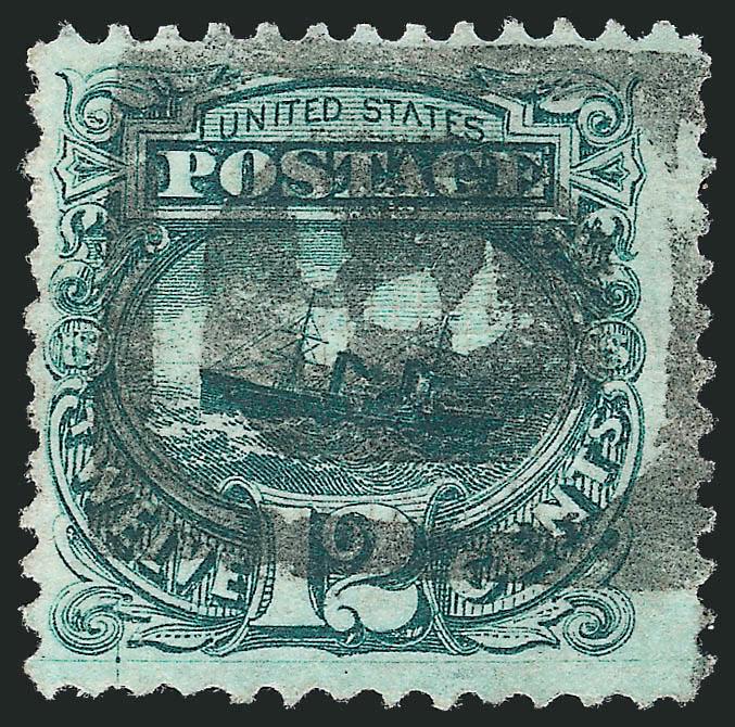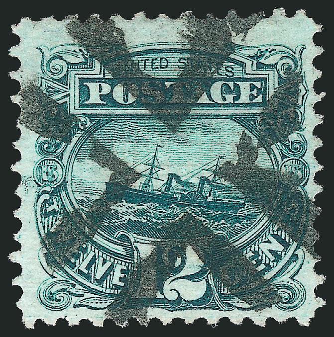 204 FC Image12c Green (117). Rich color, cancelled by bold strike of Padlock fancy cancel of West Meriden Conn., centered to bottom left, Very Fine strike, scarce cancel on any denomination above the 3c, with 1997 P.F. certificate (Image)