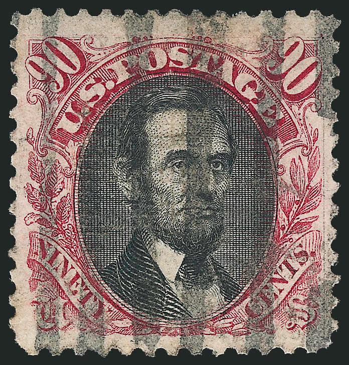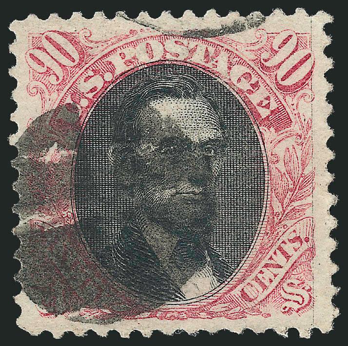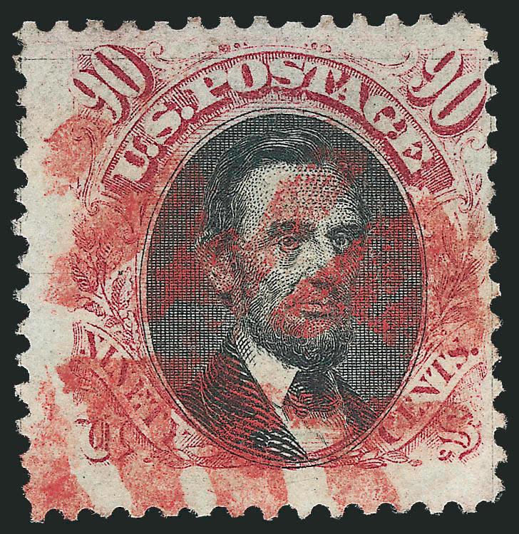 233   Image90c Carmine & Black (122). Radiant colors, neat strike of red Leaf cancel, fresh and Fine, the 90c is scarce with a red cancel, especially one as bright as the example offered here, the red Leaf was typically used on New York Supplementary Mail, with 1991 P.F. certificate (Image)