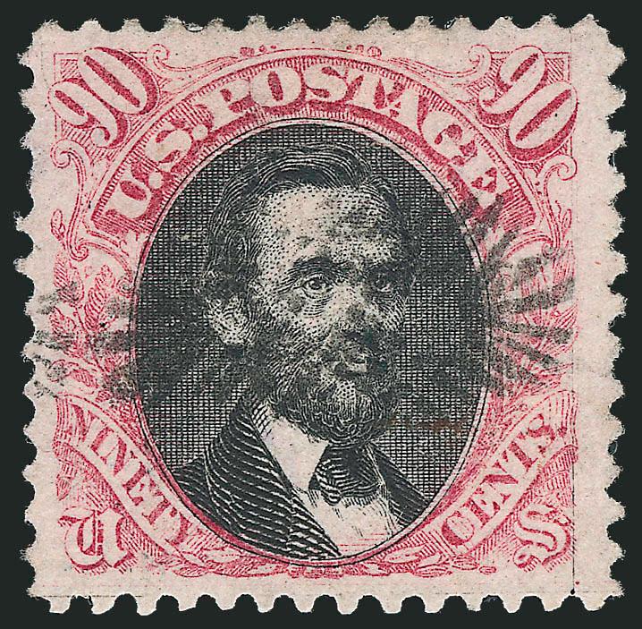 238   Image90c Carmine & Black (122). Lightly cancelled at left, rich colors, two small tears and light creases at top, Extremely Fine appearance, an attractive-looking stamp as most used copies are heavily cancelled, with 1994 P.F. certificate (Image)