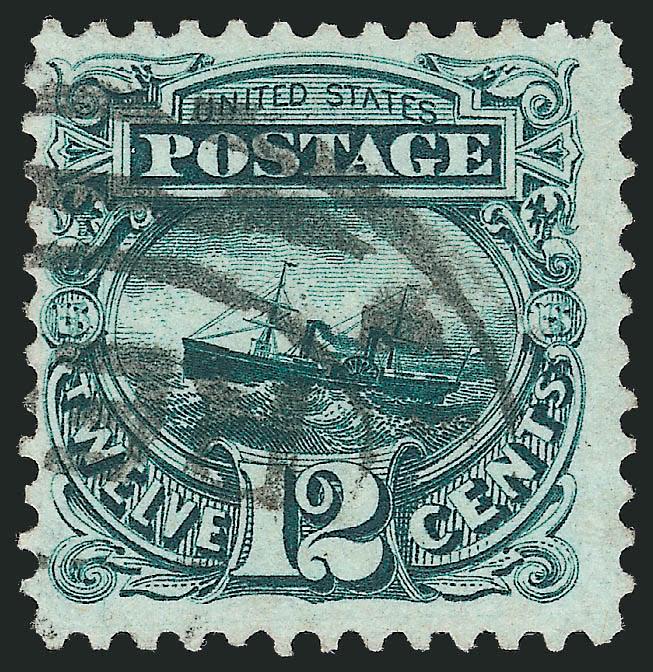 The 12c 1869 Pictorial Re-issue is the second rarest of the set in used condition (the 3c is the rarest). The Rose book estimates 15-25 extant used copies, and SMQ estimates 20 extant.