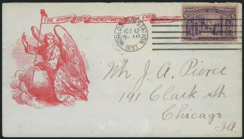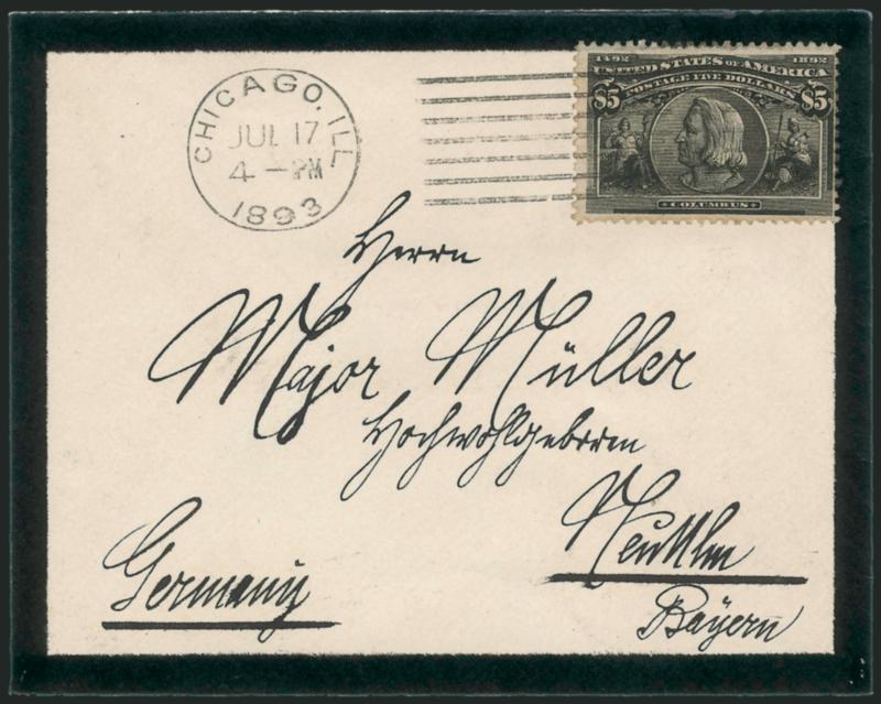 VERY FINE COVER. A FRESH AND RARE USE OF THE $5.00 COLUMBIAN ON A MOURNING COVER TO GERMANY.