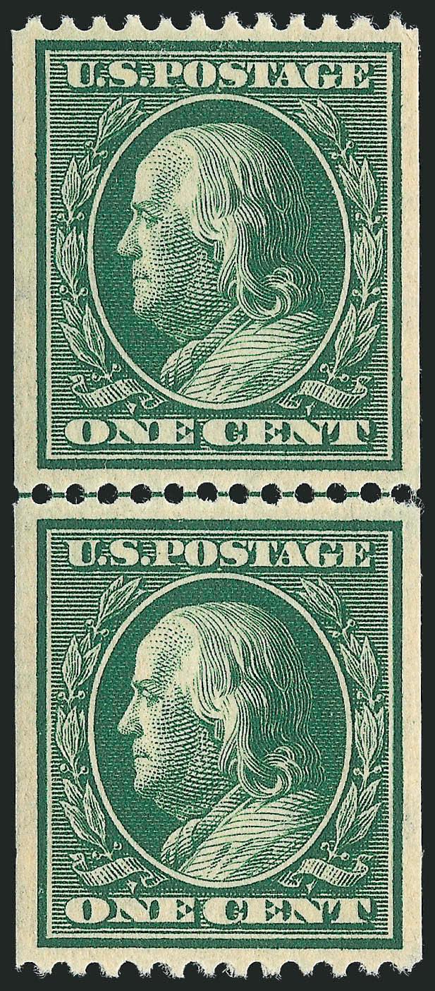 Interestingly, this is the only 5c Washington-Franklin perforated vertical coil stamp ever produced. Demand proved to be so low that no others were made.