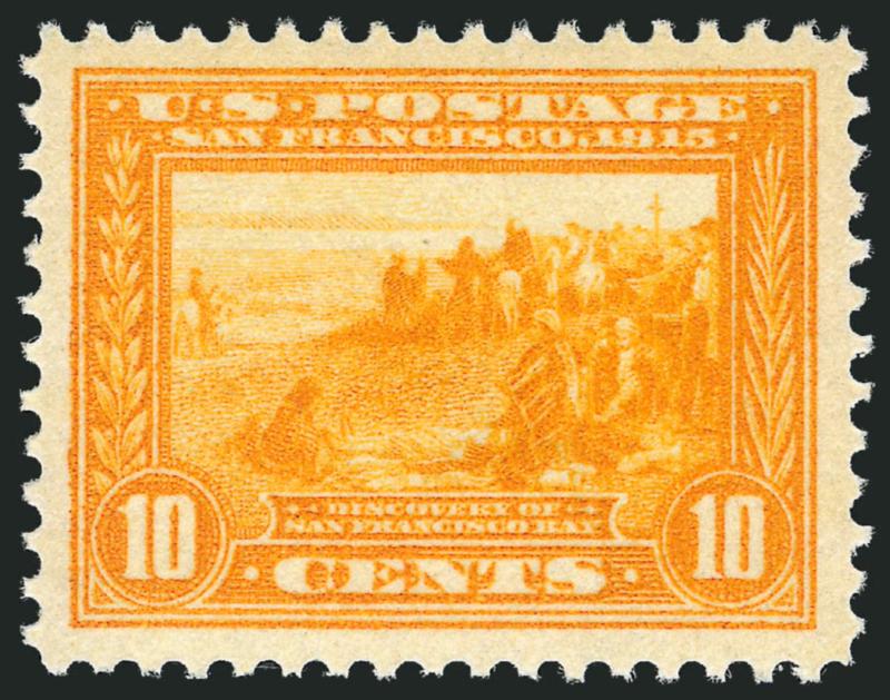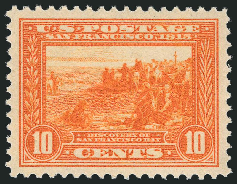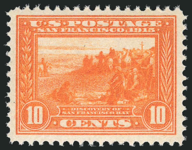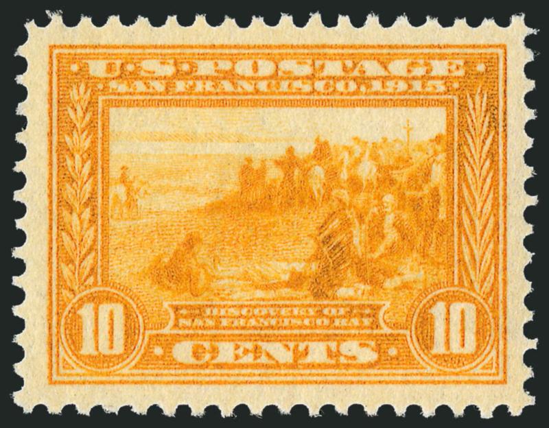 EXTREMELY FINE GEM. A SUPERB MINT NEVER-HINGED EXAMPLE OF THE 10-CENT ORANGE PERF 12 PANAMA-PACIFIC ISSUE.