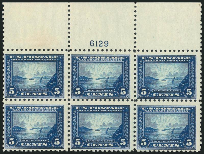 EXTREMELY FINE GEM. CERTAINLY ONE OF THE FINEST EXAMPLES OF THE 5-CENT PANAMA-PACIFIC PERF 10 IN MINT NEVER-HINGED CONDITION WE HAVE EVER HANDLED.
