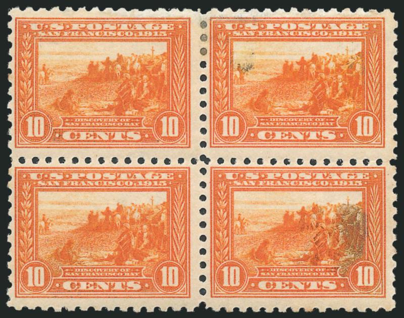 Long before numerical grading, the rarity of 10c Panama-Pacific Perf 10 stamps in superb condition (hinged or not) was well-established. The 10-gauge perfs on this issue are almost always uneven or shortened from separation. Centering is rarely above Fine. Finally, the Orange ink on many examples has darkened or faded. This stamp is the exception on all counts.