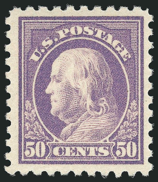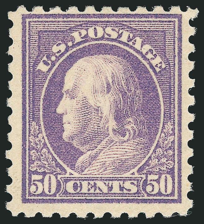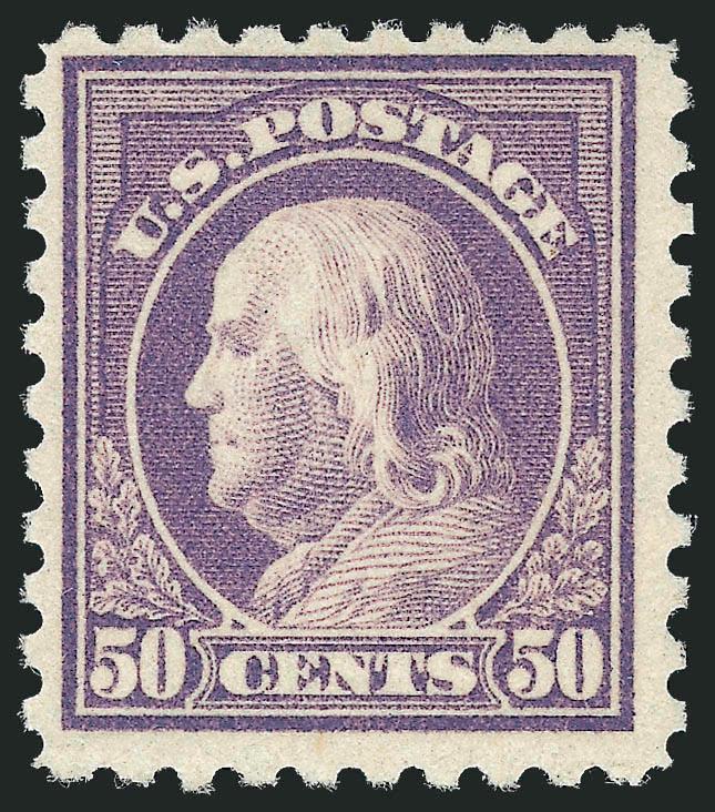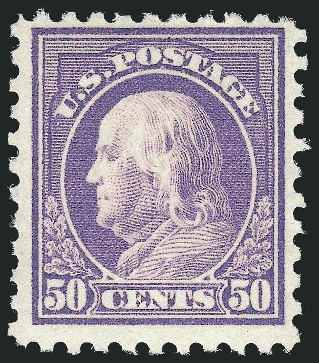 50c Light Violet (477). Mint N.H., deep rich color on bright paperVERY FINE AND CHOICE MINT NEVER-HINGED EXAMPLE OF THE 50-CENT PERF 10 FRANKLIN ISSUE ON UNWATERMARKED PAPER. This 50c