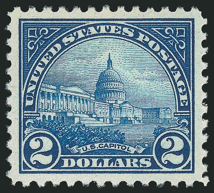 $2.00 Deep Blue (572). Mint N.H., lovely wide balanced margins, deep color and clear impression on crisp white paper, Extremely Fine Gem, with 2009 P.S.E. certificate (Superb 98, SMQ $850.00) (Image)Search for comparables at SiegelAuctions.com |