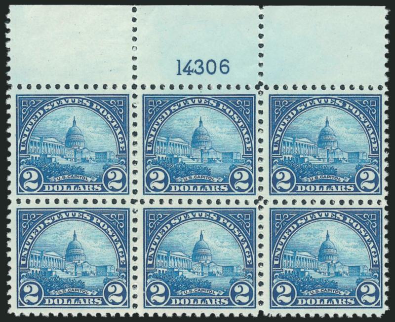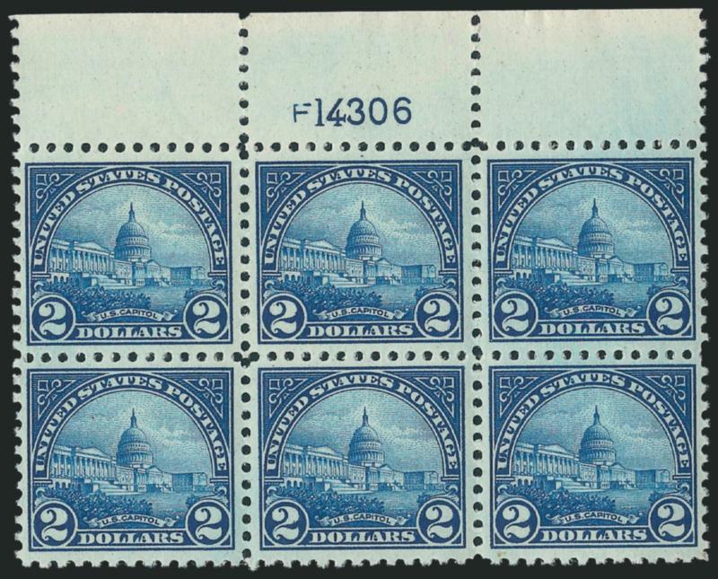 $2.00 Deep Blue (572). Mint N.H. top plate no. F14306 block of six, deep rich color, well-centered, Very Fine-Extremely Fine (Image)Search for comparables at SiegelAuctions.com |