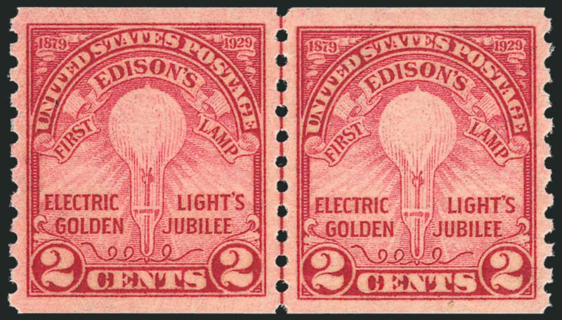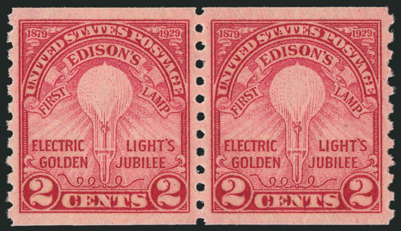 2c Edison, Coil (656). Mint N.H. pair, precise centering, fresh and crisp, bright color, Extremely Fine Gem, with 2011 P.S.A.G. certificate (100 ogNH)