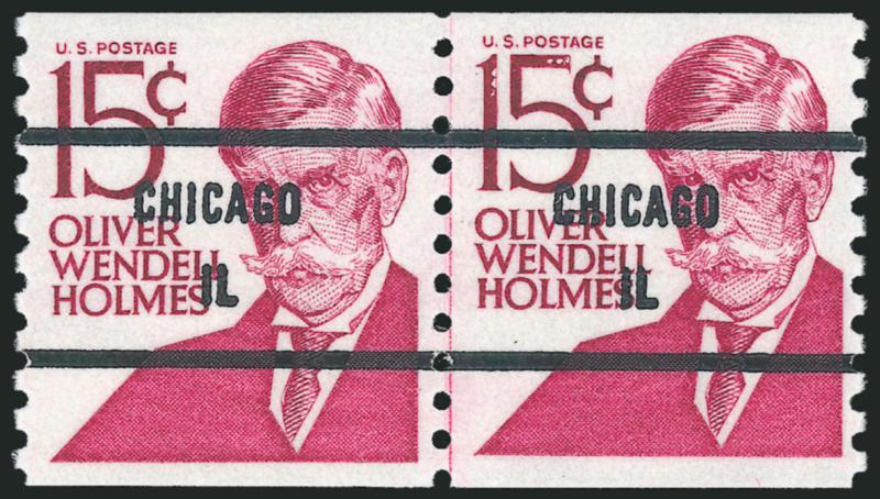15c Holmes, Shiny Gum, Untagged, Bureau Precancel (1305Ef). Mint N.H. joint line pair, "Chicago Il." precancel, fresh and Very Fine, also includes No. 1402B, Mint N.H. joint line strip of four