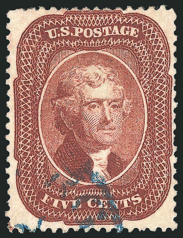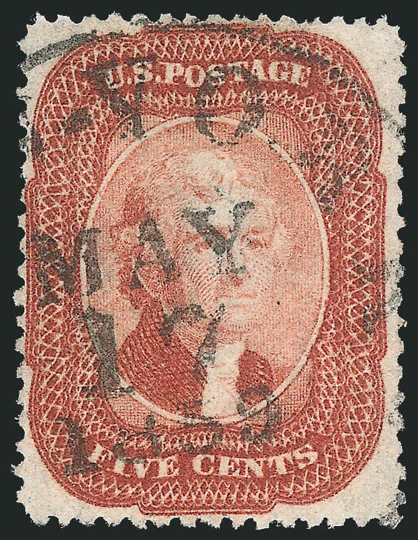 EXTREMELY FINE. A BEAUTIFUL USED EXAMPLE OF THE 1857 5-CENT INDIAN RED. A DIFFICULT STAMP TO FIND IN SUCH CHOICE CONDITION.