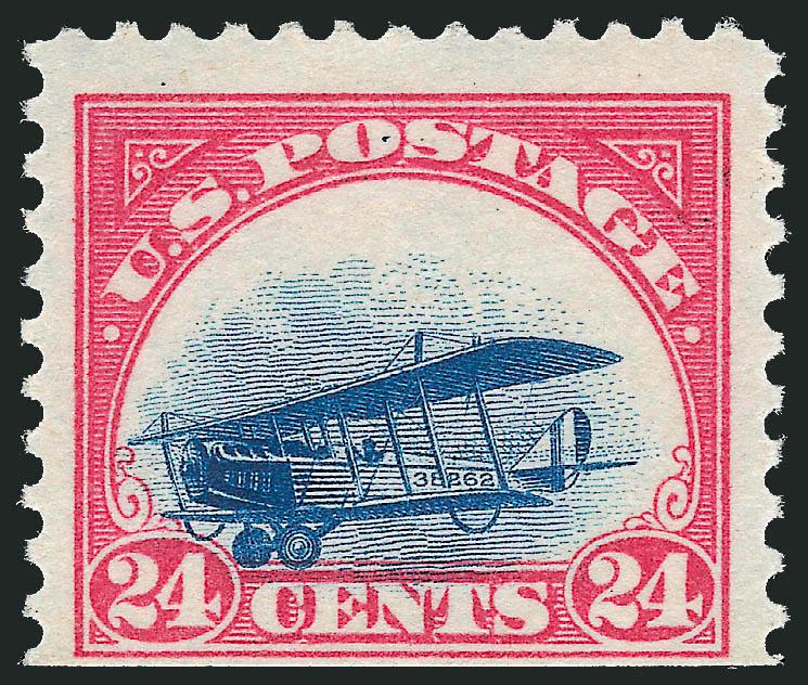 2142 og Image24c Carmine Rose & Blue, 1918 Air Post (C3). Vignette shifts, one is Mint N.H. single with narrow bottom natural s.e., wheels of plane into frame line above "Cents", other top blue plate no. 8493 and arrow selvage strip of three with high-flying plane, tip of left wing into "G" of "Postage", one stamp in strip with fingerprint on gum, Fine-Very Fine (Image)