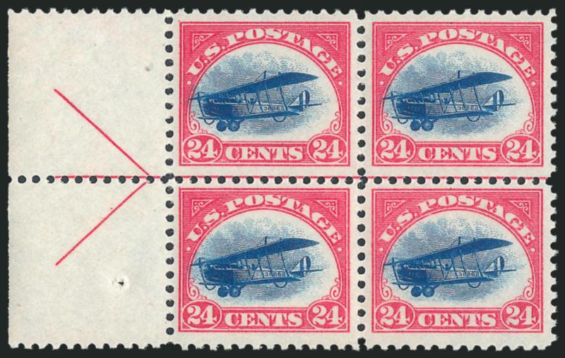 2143 nhbl Image24c Carmine Rose & Blue, 1918 Air Post (C3). Mint N.H. wide left arrow block of four, bottom pair Fine, top pair wide margins and centered, Extremely Fine, top right especially nice, Scott Retail as four Mint N.H. singles (Image)