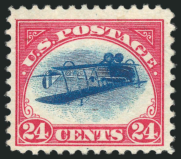 of "POSTAGE", tiny corner perforation thin at bottom rightVERY FINE APPEARING EXAMPLE OF THE FAMOUS 1918 24-CENT INVERTED "JENNY". THIS IS ONE OF THE MOST EASILY RECOGNIZABLE STAMPS IN ALL OF PHILATELY. According to Jenny by George