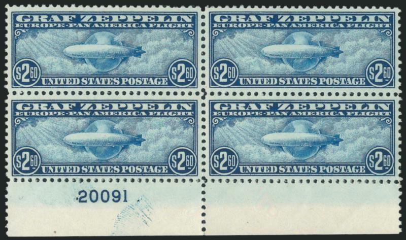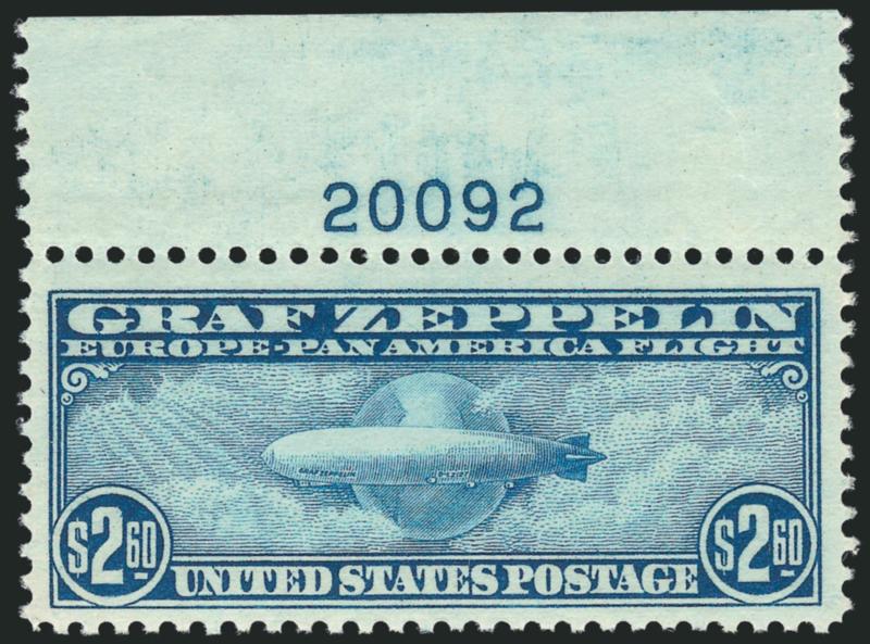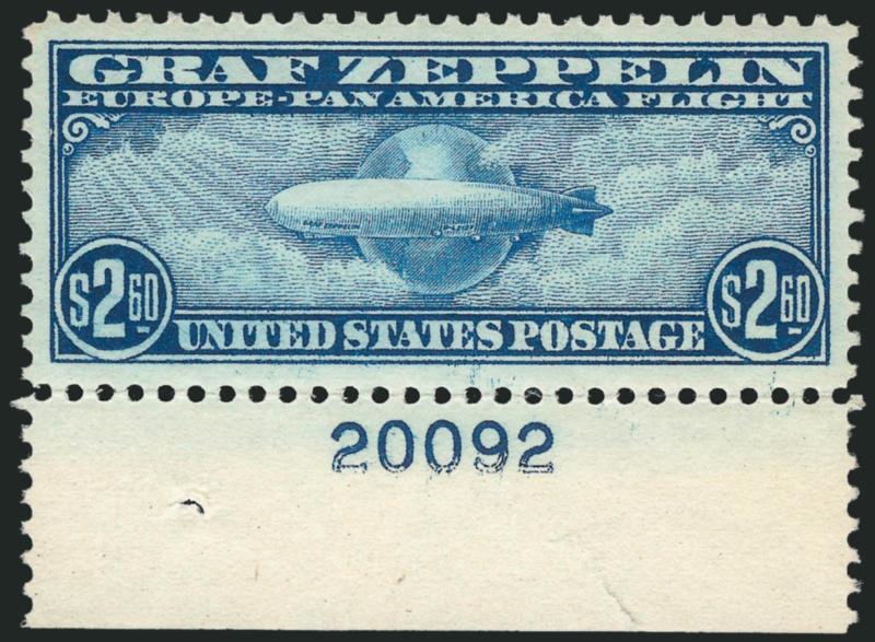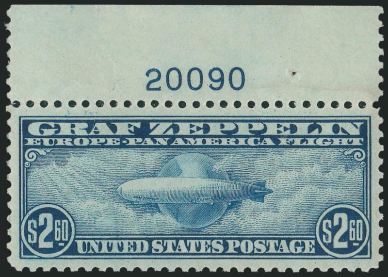 EXTREMELY FINE GEM. A MAGNIFICENT TOP PLATE NUMBER MINT NEVER-HINGED $2.60 GRAF ZEPPELIN GRADED SUPERB 98 BY P.S.E.