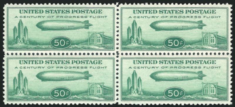 2206 nhbl Image50c Chicago Zeppelin (C18). Mint N.H. block of four, perfectly centered, fresh and crisp, Extremely Fine Gem block (Image)