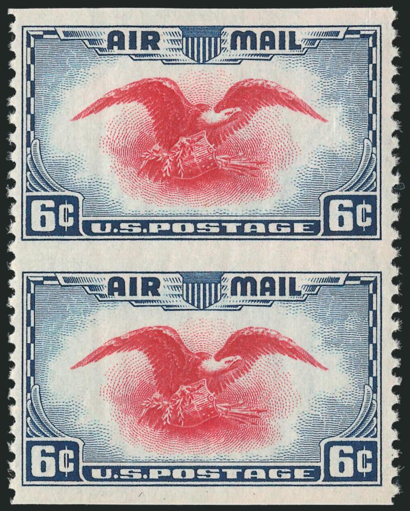 2209 nh Image6c Dark Blue & Carmine, Vertical Pair, Imperforate Horizontally (C23a). Mint N.H., slight gum skip streaks, Very Fine, Kessler handstamp guarantees (Image)