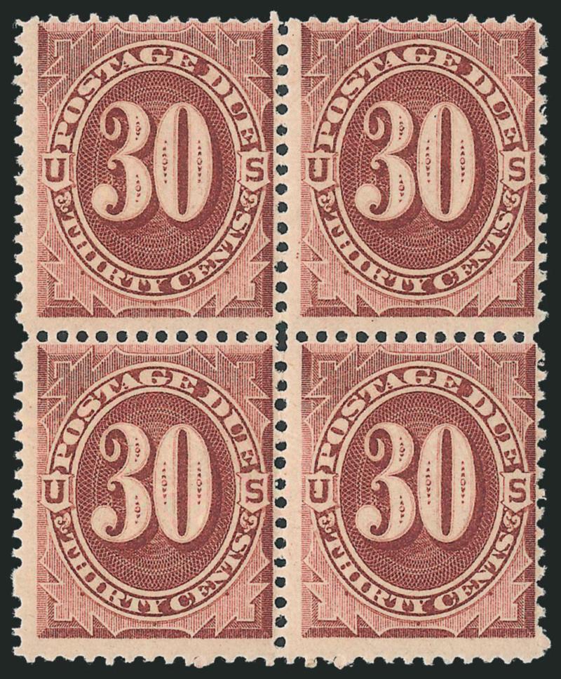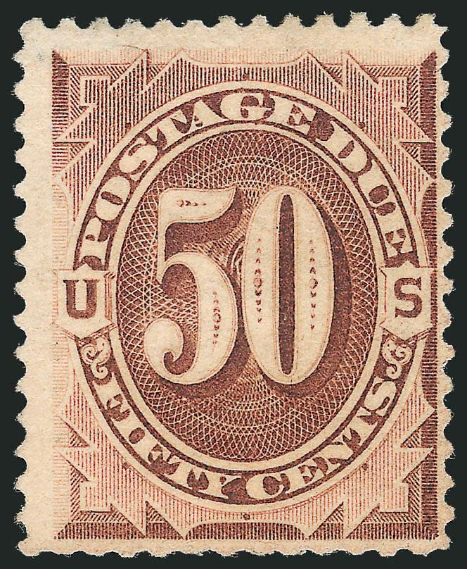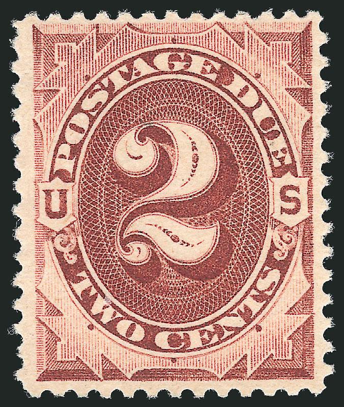 EXTREMELY FINE. A RARE MINT NEVER-HINGED EXAMPLE OF THE 10-CENT 1884 RED BROWN POSTAGE DUE. A STAMP OF TREMENDOUS VISUAL APPEAL.