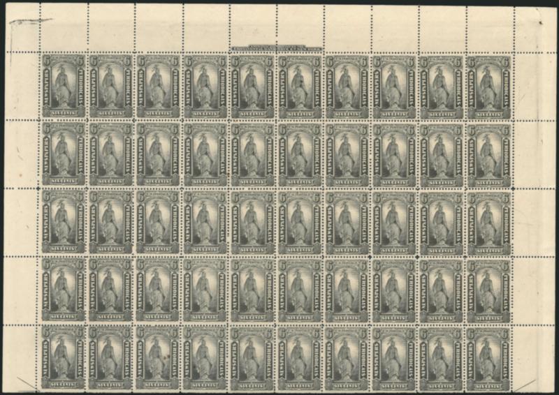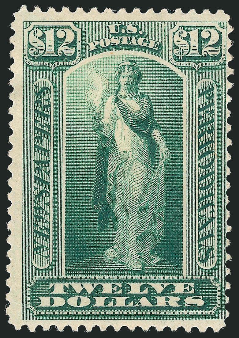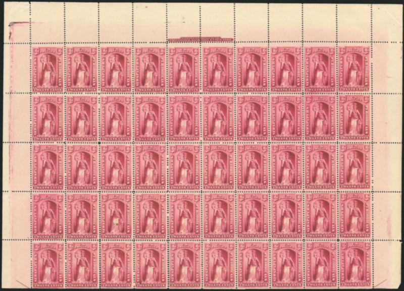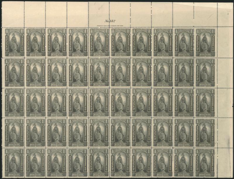 FINE-VERY FINE APPEARANCE. A RARE MINT NEVER-HINGED PANE OF 50 OF THE 1885 12-CENT AMERICAN BANK NOTE COMPANY NEWSPAPERS AND PERIODICALS ISSUE.