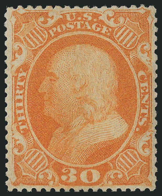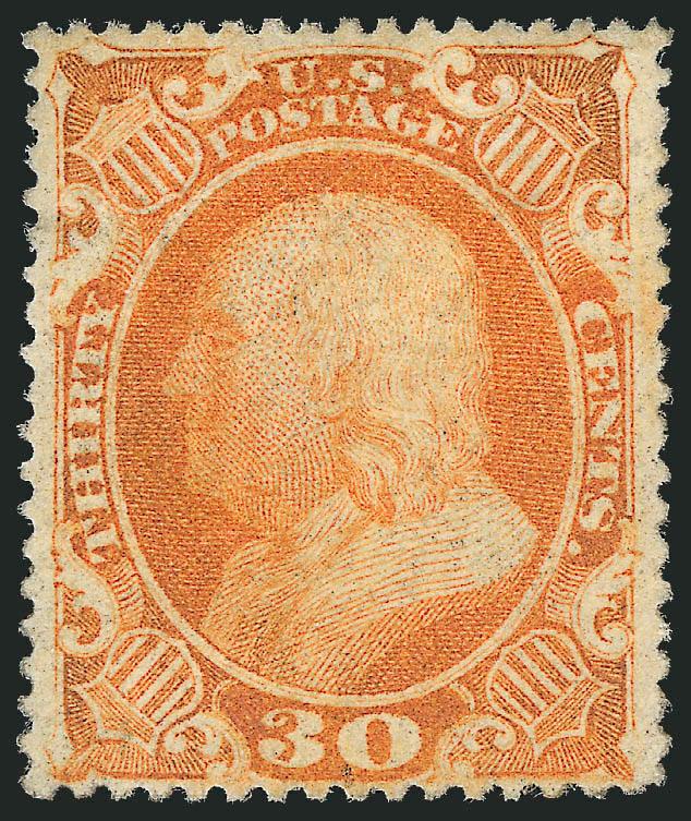 EXTREMELY FINE GEM. A SUPERB ORIGINAL-GUM EXAMPLE OF THE 30-CENT 1860 ISSUE WHICH HAS BEEN GRADED XF-SUPERB 95 BY P.S.E. -- THE HIGHEST GRADE AWARDED TO DATE.