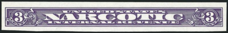 2475 nh Image20c Violet, Narcotic Tax (RJA99b). Mint N.H., beautiful fresh color, huge margins and perfect centering, Extremely Fine Gem, with 2005 P.S.E. certificate (Superb 98, Revenues not priced in SMQ), Scott Retail listed with "+" (Image)