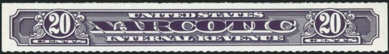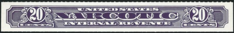 2476 nh Image20c Violet, Narcotic Tax (RJA99b). Mint N.H., rich color on bright paper, wide margins, Extremely Fine Gem, with 2005 P.S.E. certificate (XF-Superb 95, Revenues not priced in SMQ), Scott Retail listed with "+" (Image)