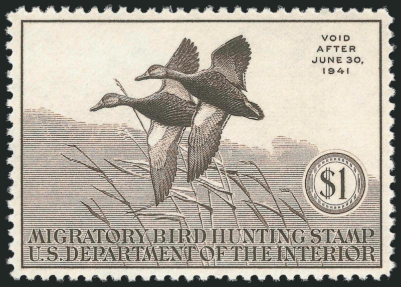 $1.00 1940 Hunting Permit (RW7). Mint N.H., essentially perfectly centered, proof-like impression on bright paper, Extremely Fine Gem, with 2011 P.S.E. certificate (XF-Superb 95, SMQ $575.00) (Image)Search for comparables at SiegelAuctions.com |