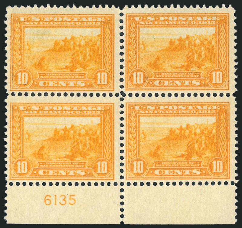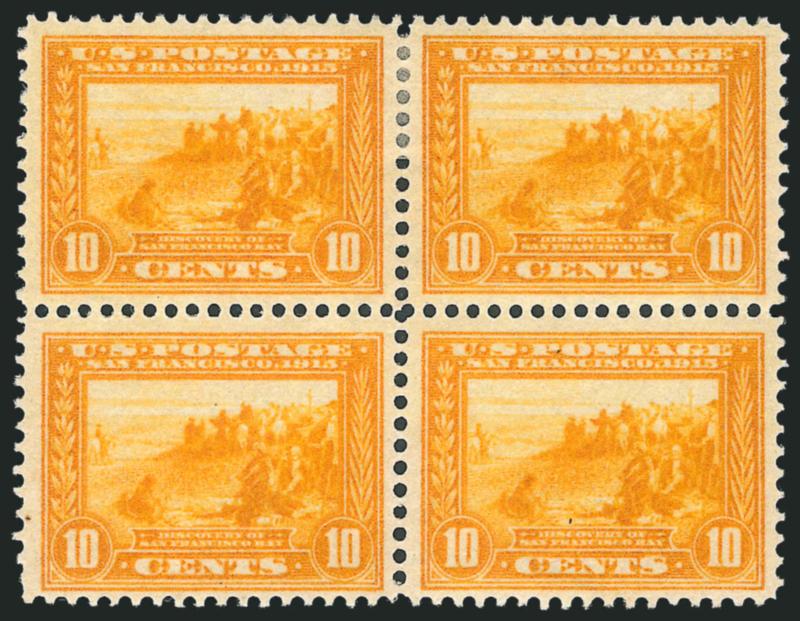 2631 nhbl Image1c-10c Panama-Pacific (397-400). Blocks of four, all Mint N.H. except 5c top pair, 10c with bottom plate no. selvage, Fine-Very Fine (Image)