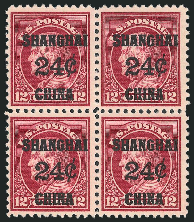2693 ogbl Image2c on 1c-24c on 12c Offices in China (K1-K3, K5, K8a, K10-K11). Blocks of four, bottom pairs Mint N.H., all others essentially lightly hinged, Fine-Very Fine (Image)