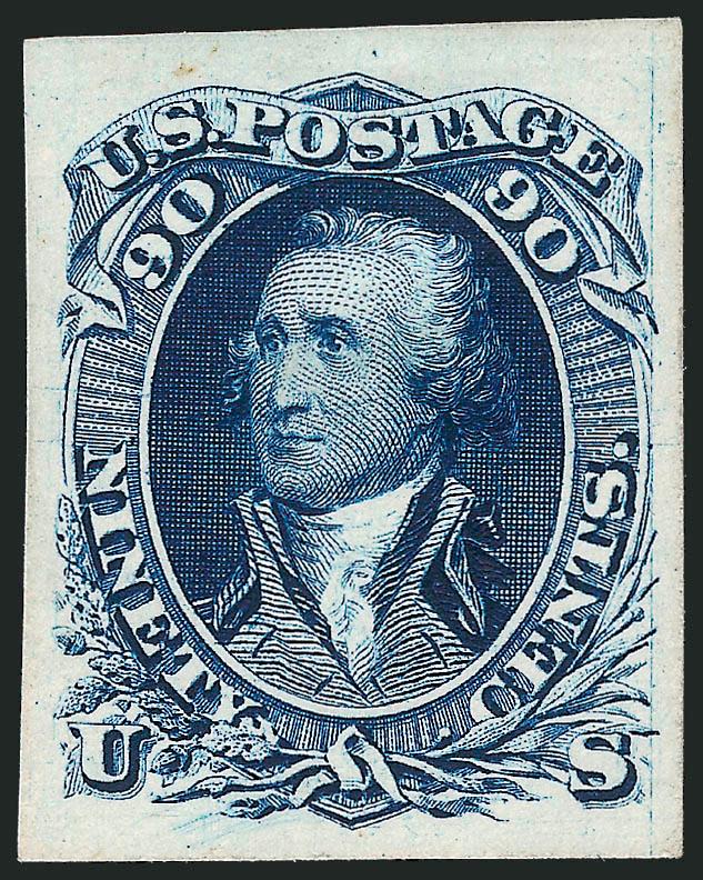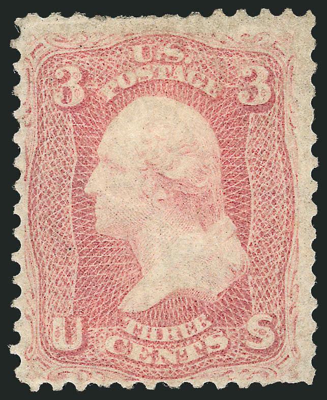 THE 1861 3-CENT PINK IS AN EXCEEDINGLY DIFFICULT STAMP TO LOCATE IN UNUSED CONDITION WITH GOOD COLOR, ESPECIALLY WITH FULL ORIGINAL GUM. THIS STAMP HAS EXCELLENT COLOR.