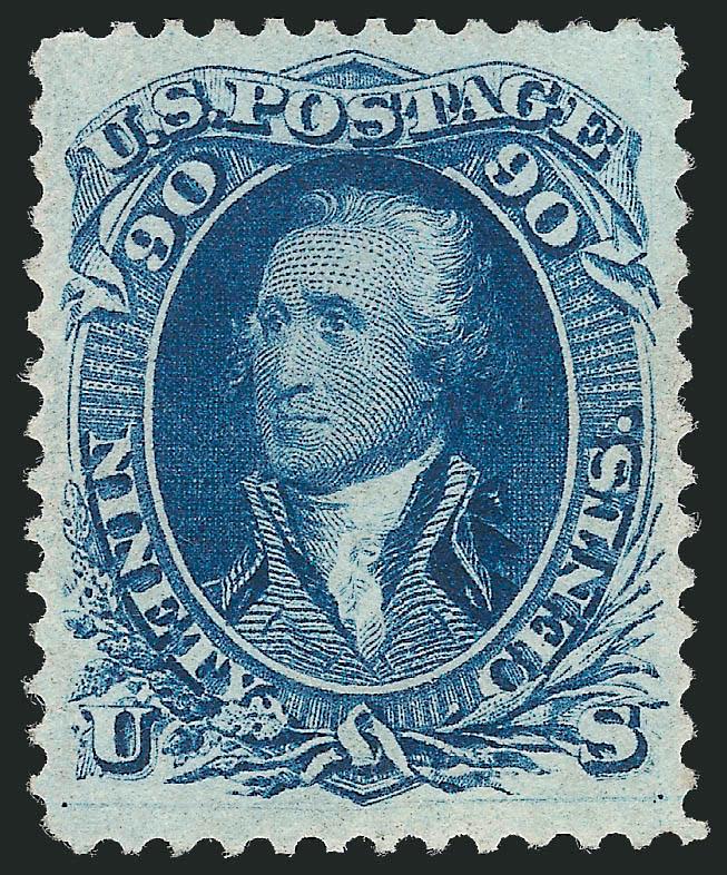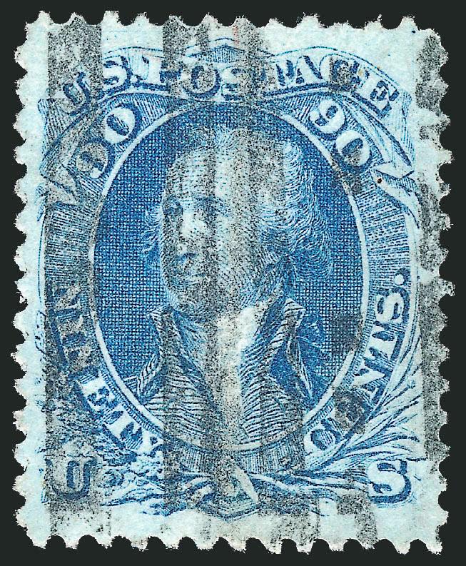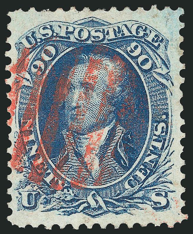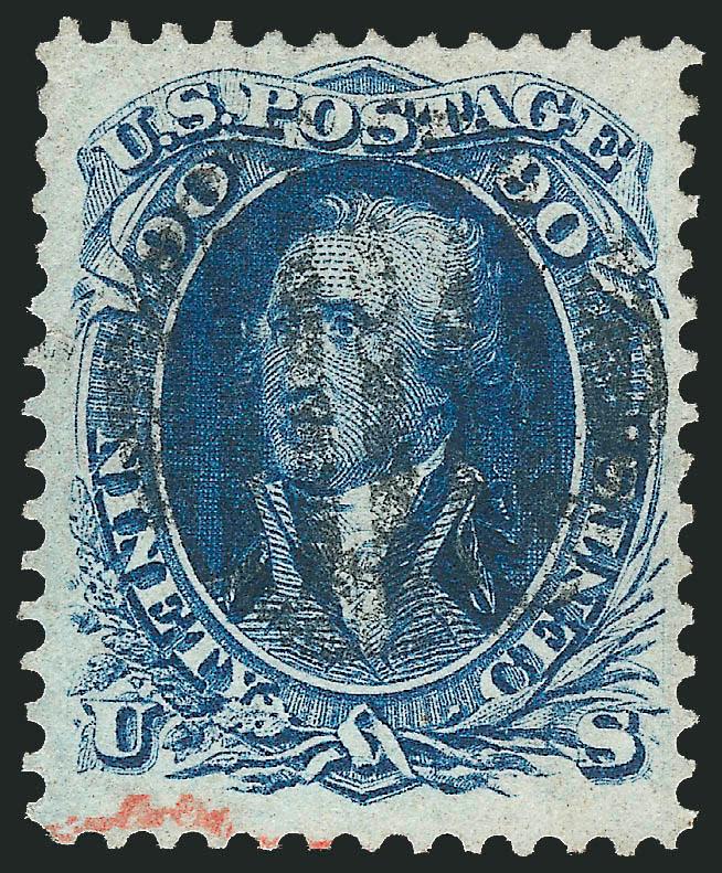 EXTREMELY FINE GEM. A COLORFUL EXAMPLE OF THE 90-CENT 1861 ISSUE WITH RED GRID CANCEL, MAGNIFICENT MARGINS AND SUPERB CENTERING.