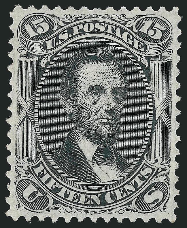 EXTREMELY FINE GEM. A SUPERB ORIGINAL-GUM EXAMPLE OF THE 1868 12-CENT F GRILL. AN EXTRAORDINARY STAMP AND CERTAINLY AMONG THE FINEST IN EXISTENCE. THIS STAMP HAS BEEN AWARDED THE GRADE OF XF-SUPERB 95 BY P.S.E., WHICH IS THE HIGHEST GRADE AWARDED TO DATE.