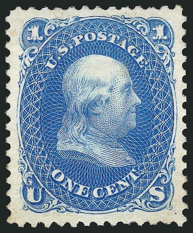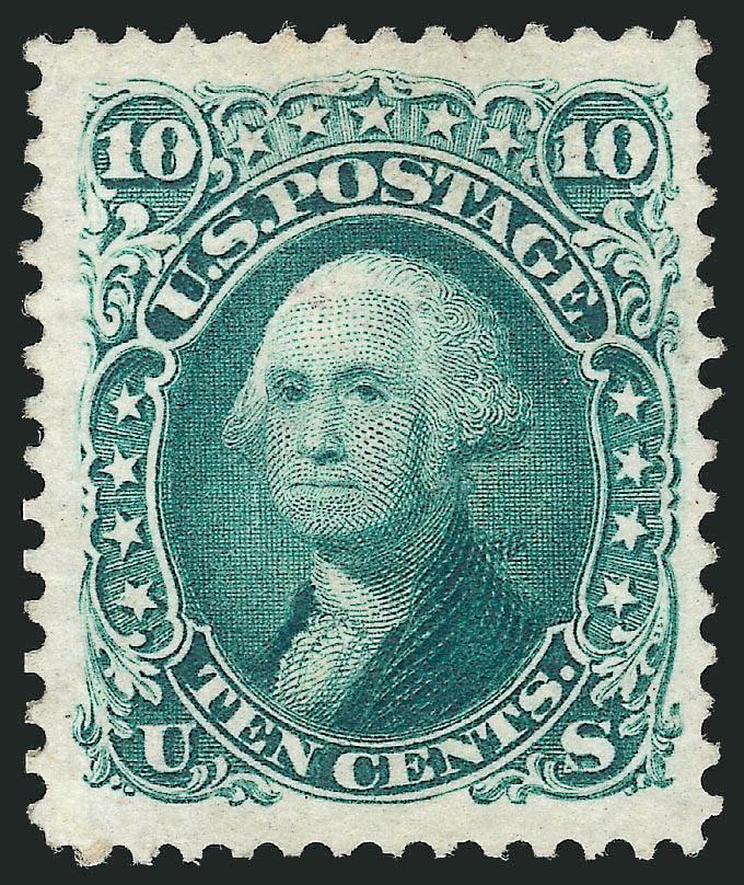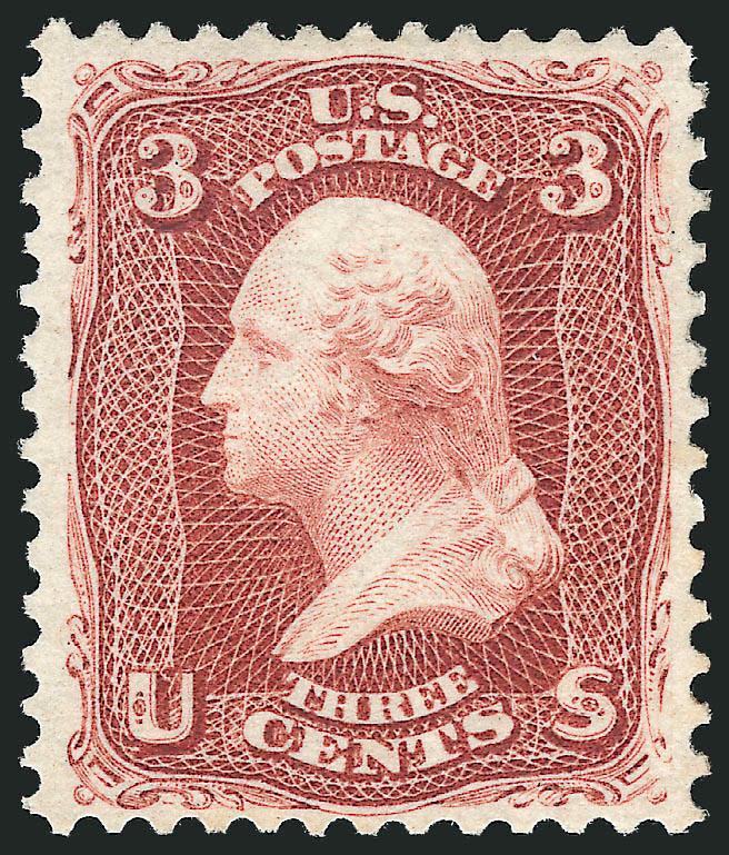 Our unpublished census of Scott 103 used contains 24 copies, with approximately 13 that are sound. However, of these only five or six have centering we would consider Very Fine, and perhaps a couple others could be considered Extremely Fine, including the ex Zoellner copy and the blue target cancel copy which is ex Morris, Twigg-Smith and Tahoe (and has a small corner crease). Several of the possibly sound examples have not been examined in decades and may in fact not be sound. The example offered here, with wide balanced margins and a relatively light cancel, is a true condition rarity and arguably the finest example known. In fact, we believe the P.S.E. should have graded this stamp XF-Superb 95, but used 1861-66 Re-Issues are frequently penalized by the P.S.E. for having hallmark genuine duplex or oval cancellations.
