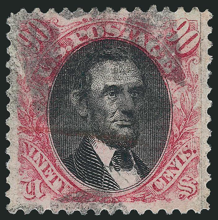 1320   Image90c Carmine & Black (122). Bright colors, cork cancel, also with ms. cancel at center, accompanying certificate notes whitened (probably to lighten the pen cancel), reperfed at left, Very Fine appearance, with 1988 A.P.S. certificate (Image)