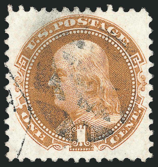 The 6c is the one of the rarest of the set in used condition. SMQ estimates that approximately 30 exist in used condition, which in our experience is a fairly accurate accounting. The example offered here is easily one of the finest in existence -- most are either off-center or have flaws.