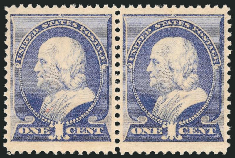 1436 nh Image1c Ultramarine (212). Mint N.H. horizontal pair, exceptionally well-centered with unusually wide horizontal margins, bright and fresh, right stamp very slight gum disturbance, Extremely Fine (Image)