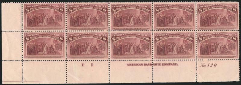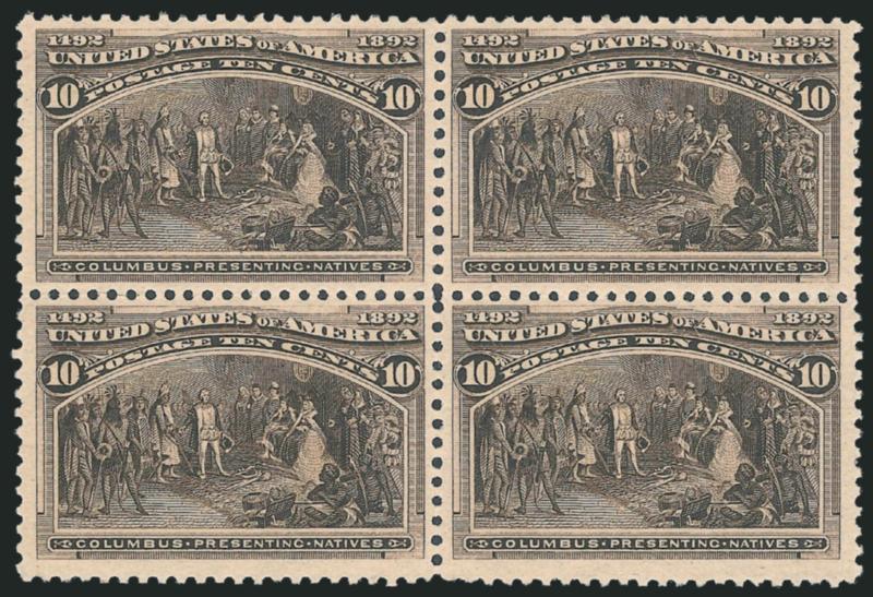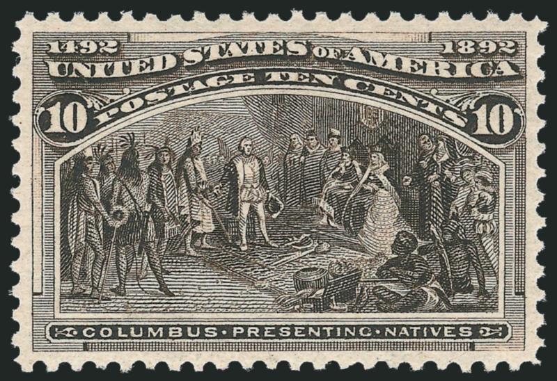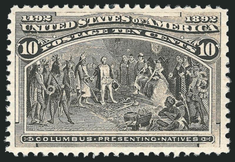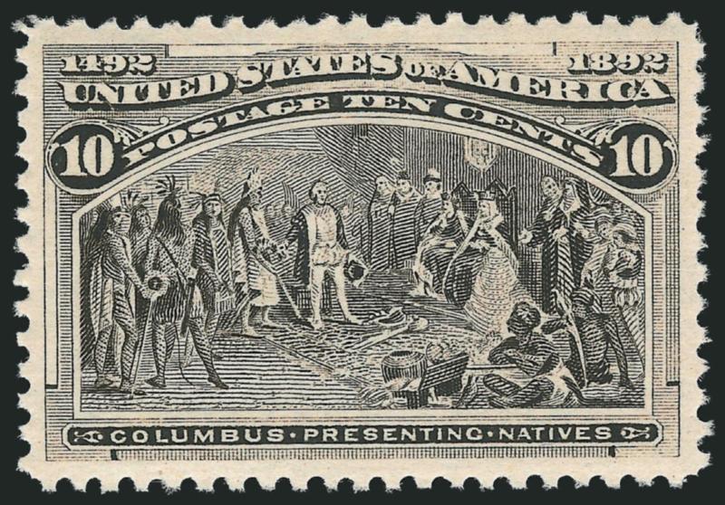 The 10c is extremely difficult to find with wide and centered margins. For some reason, it can be found with wide margins at sides but almost never is seen this way at top and bottom. It is easily one of the most difficult of the non-dollar value Columbians to find in this superb Mint N.H. condition.