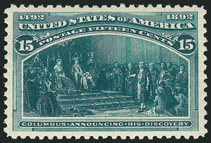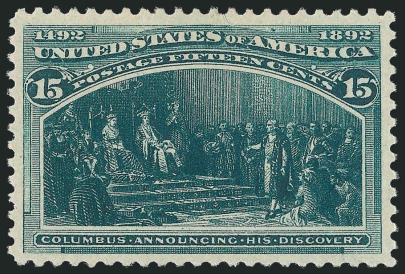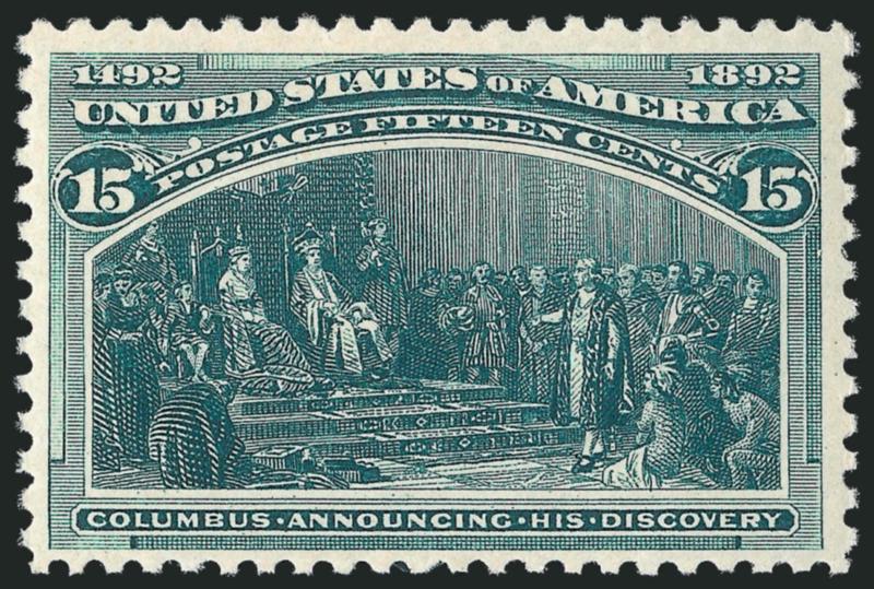 EXTREMELY FINE GEM. A SUPERB MINT NEVER-HINGED EXAMPLE OF THE 15-CENT COLUMBIAN ISSUE, WHICH HAS BEEN AWARDED THE GRADE OF SUPERB 98.