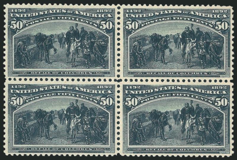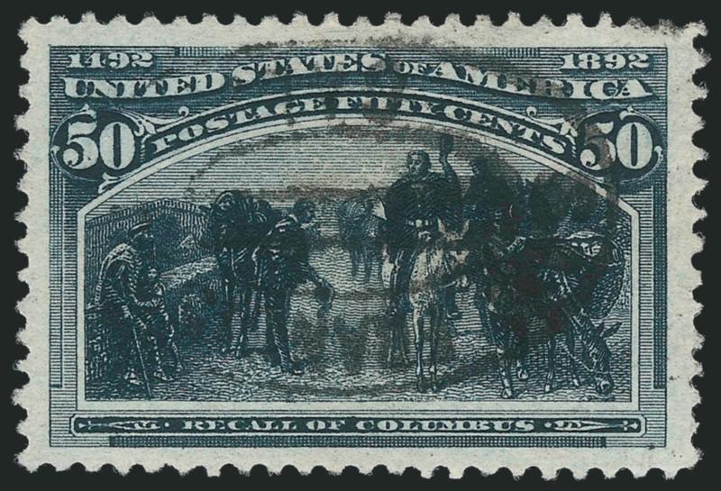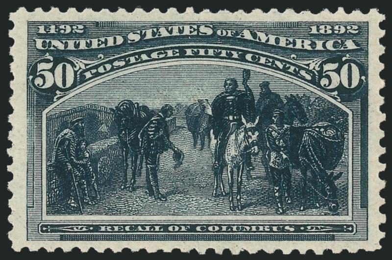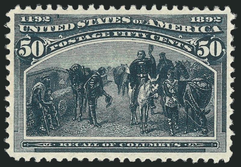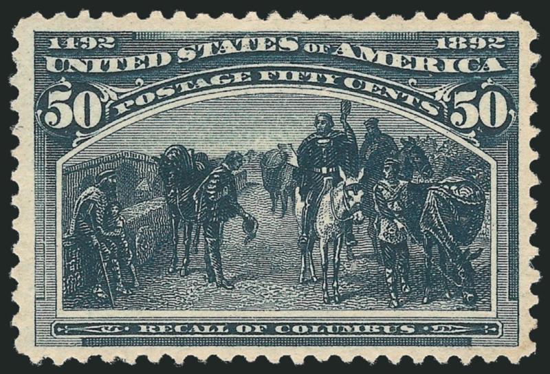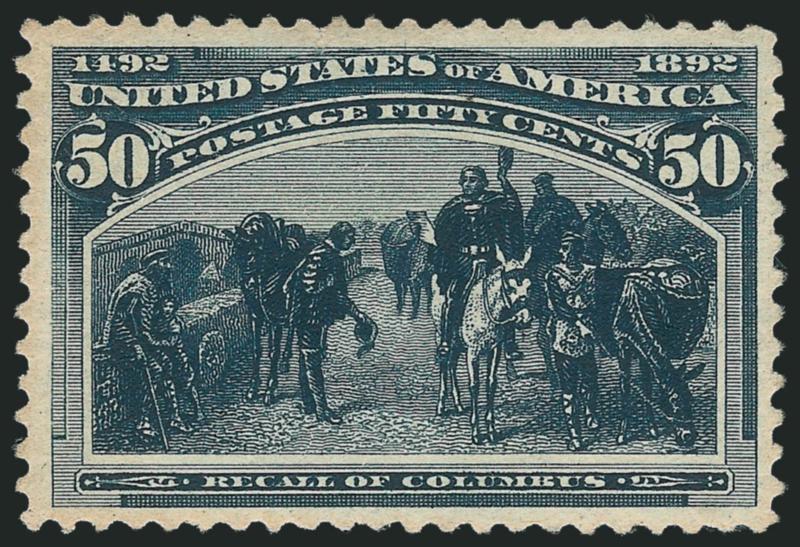 EXTREMELY FINE GEM. A JUMBO-MARGINED ORIGINAL-GUM EXAMPLE OF THE 50-CENT COLUMBIAN ISSUE.