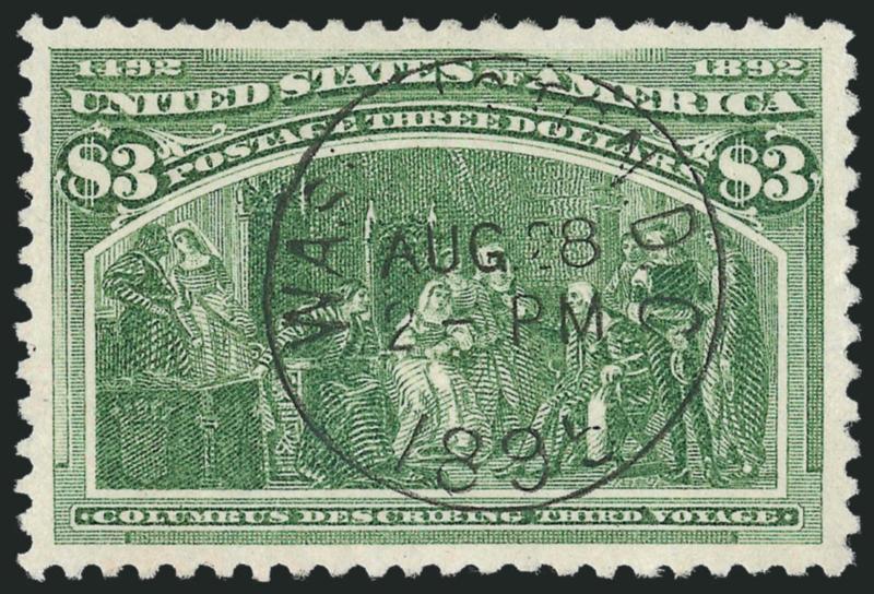 EXTREMELY FINE GEM. AN IDEAL USED EXAMPLE OF THE $3.00 COLUMBIAN.