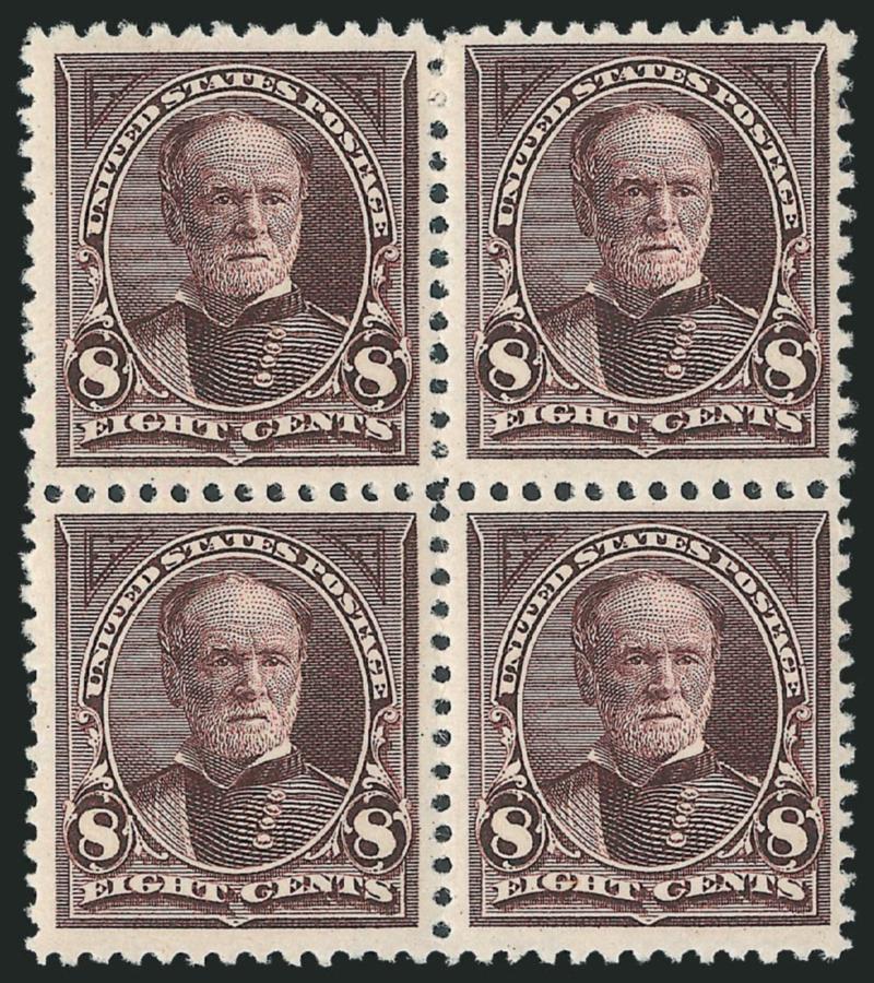 8c Violet Brown (257). Mint N.H. block of four, couple light fingerprints on gum, crisp impression on bright paper, wide margins and nice centering, Very Fine and choice, Scott Retail as singles