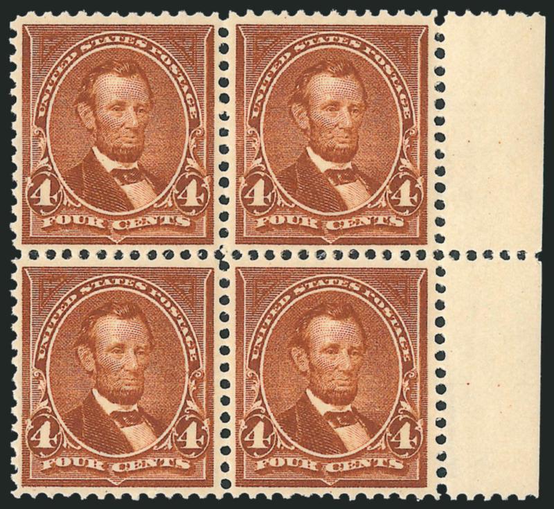 1621 nhbl Image4c Orange Brown (280b). Mint N.H. block of four with right selvage, couple faint fingerprints on gum, lovely bright color and outstanding centering, Extremely Fine block (Image)